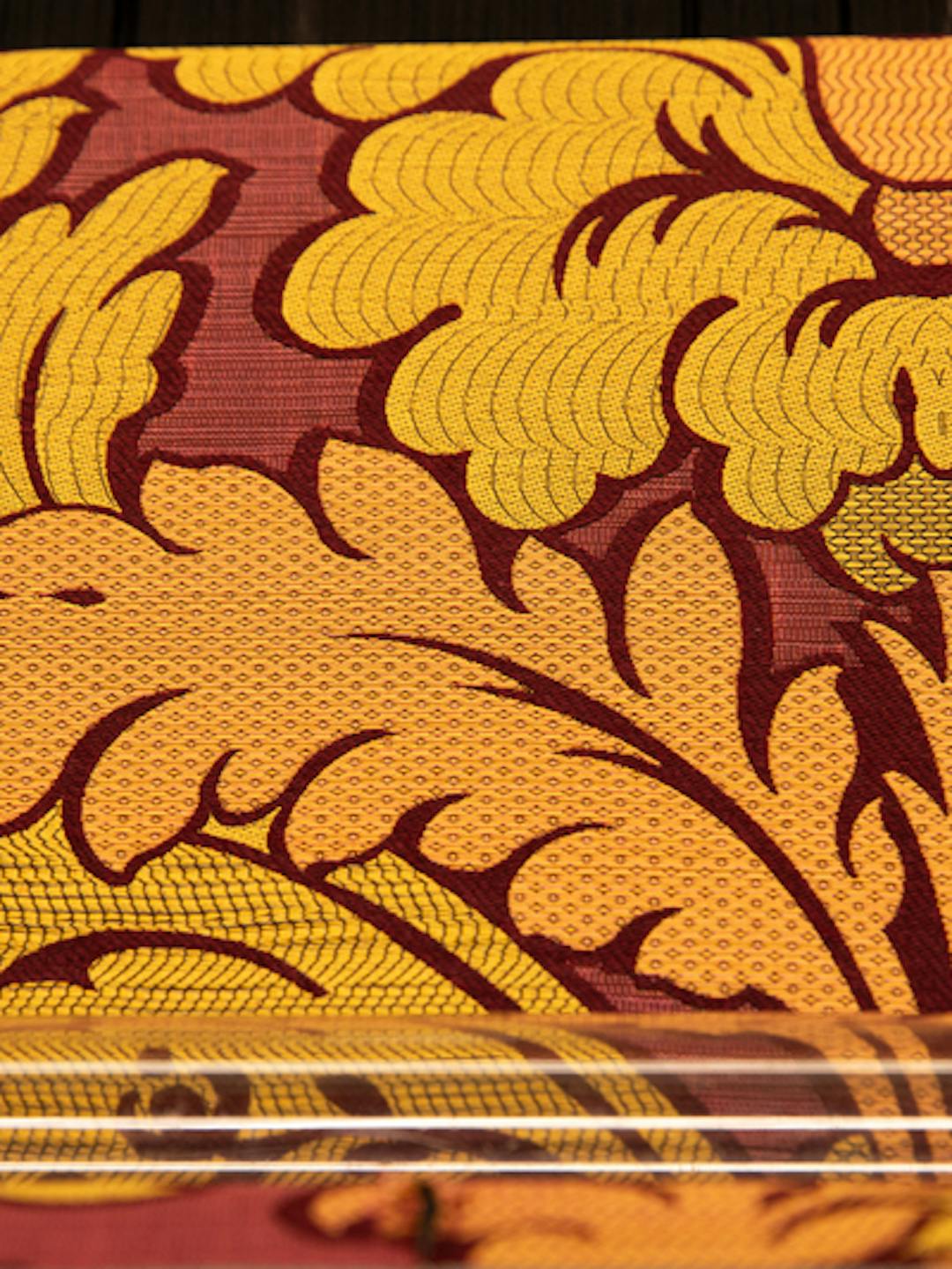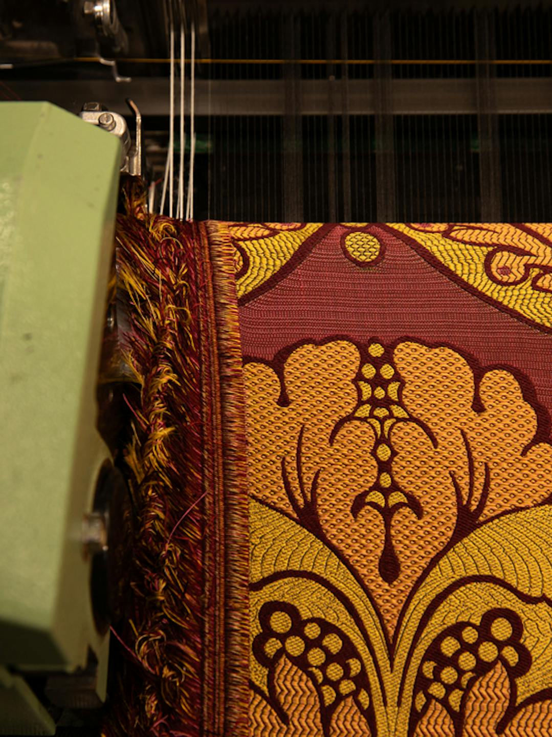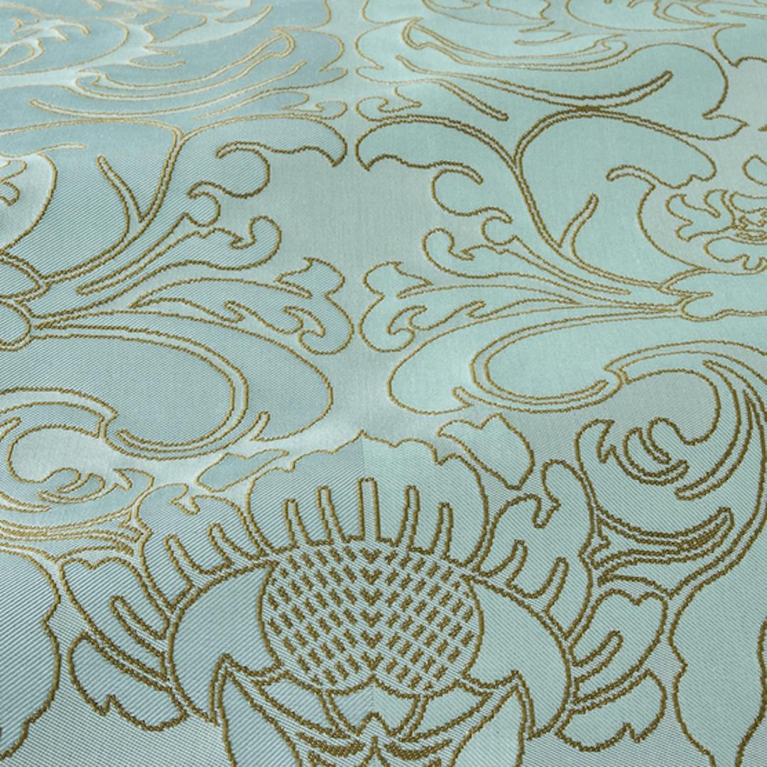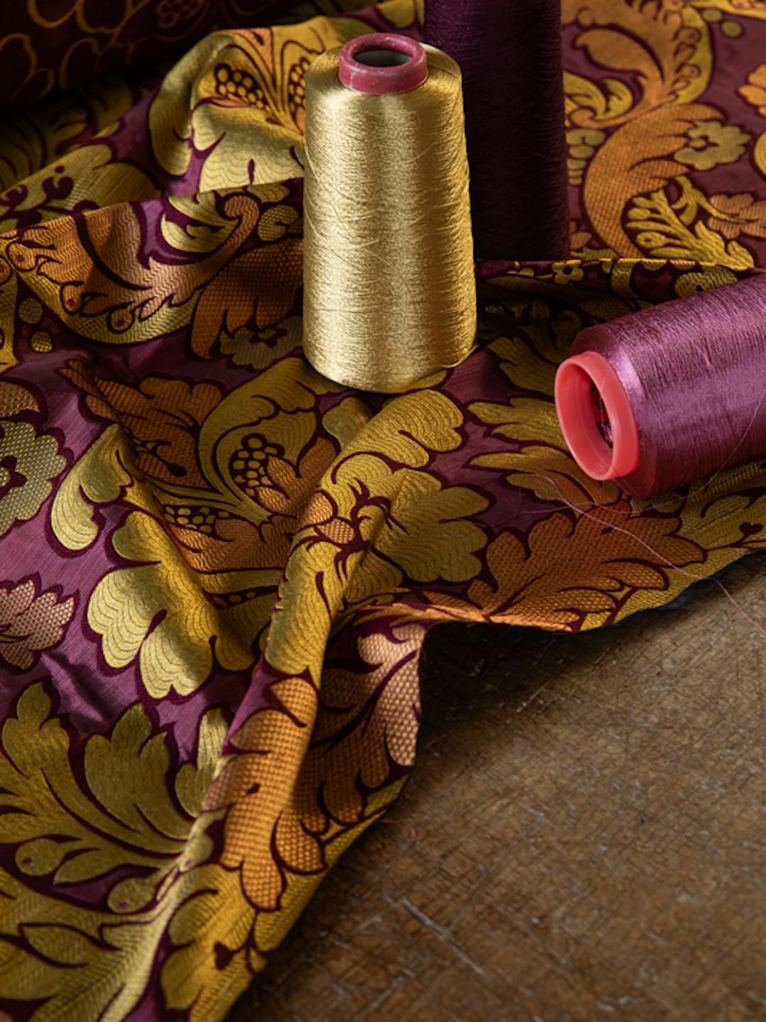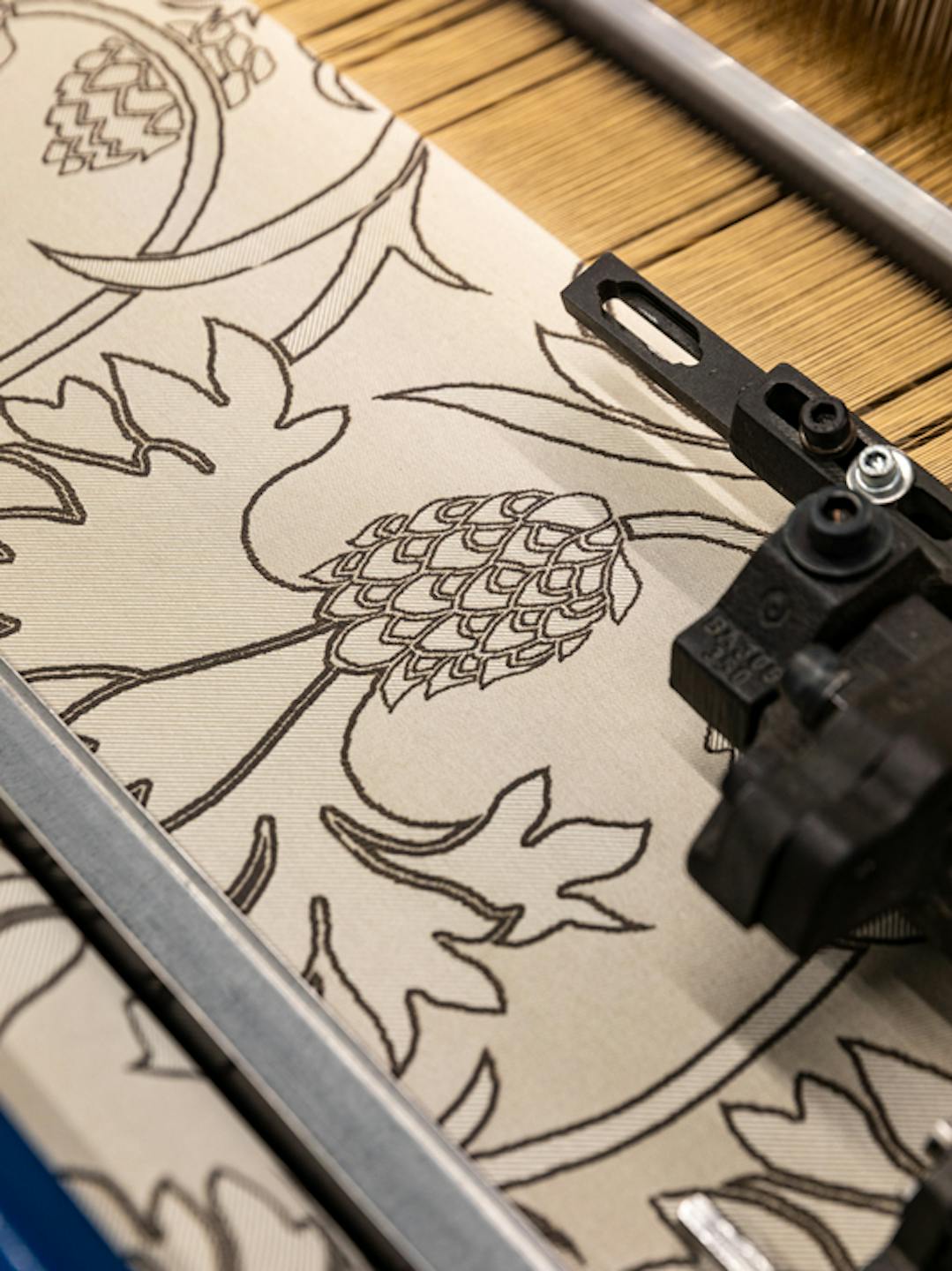 Tissés à Sudbury, dans le Suffolk, berceau historique du tissage britannique, ces jacquards s’inscrivent dans une longue tradition textile héritée des tisserands huguenots réfugiés en Angleterre au XVIIe siècle. Maîtres dans l’art de la soie et amateurs de motifs floraux sophistiqués, ces artisans ont façonné un langage textile franco-anglais toujours vivant aujourd’hui. Fidèle à cet héritage, Thorp of London collabore avec une manufacture de tissage familiale qui perpétue un savoir-faire d’exception transmis de génération en génération.