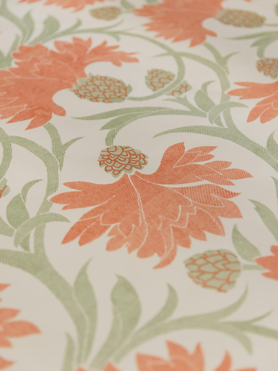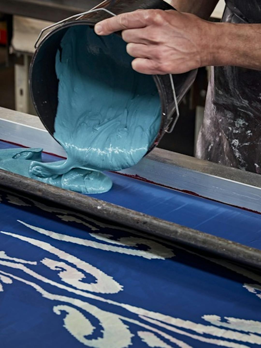 Issu de l’univers anglais Warner Textile, Bernard Thorp développe un concept novateur : proposer des dessins personnalisables, imprimés à la demande, en petites séries. Chaque motif est imprimé manuellement dans l’atelier du Norfolk, au nord-est de Londres, selon un processus méticuleux où chaque couleur est appliquée, à la main, cadre après cadre, par des artisans imprimeurs spécialisés.