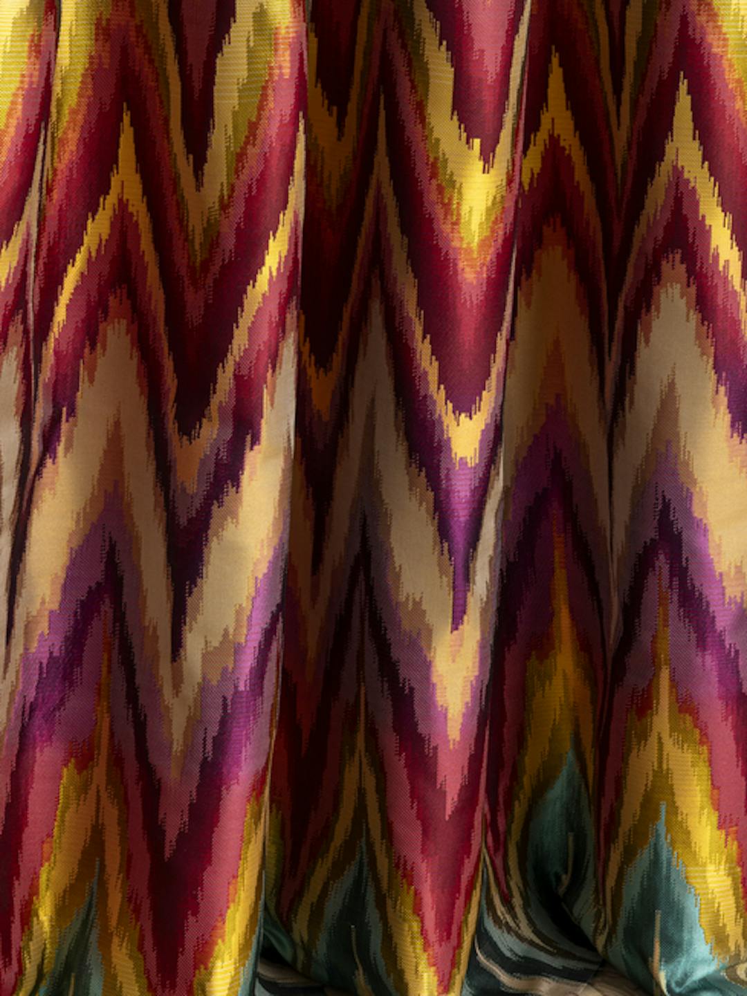 La complémentarité des jacquards et des imprimés Thorp of London donne naissance à un langage textile riche et nuancé. Les jacquards structurent, les imprimés racontent ; les textures répondent aux motifs dans un jeu d’associations typiquement britannique, à la fois exubérant et élégant, éclectique mais toujours cohérent.